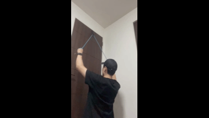 ドアアンカーをドアに引っ掛けて使うことで、チューブを固定することが出来ます。ラットプルダウンやシーテッドロウを行う際は、ドアアンカーを使うとチューブとの距離を作ることが出来るので、高い負荷をかけることが出来ます。自宅に引っ掛ける場所がない方も多いと思うので、ドアアンカーがあると便利です。