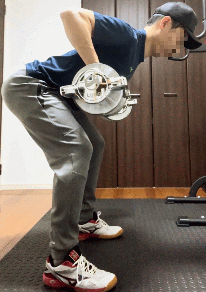 「腕で持ち上げる」のではなく、背中で引く感覚を意識しましょう。背筋を伸ばし、体の軸がずれないように意識しましょう。ダンベルを戻す際はしっかりと筋肉が伸びていることを感じながら行うと効果的です。