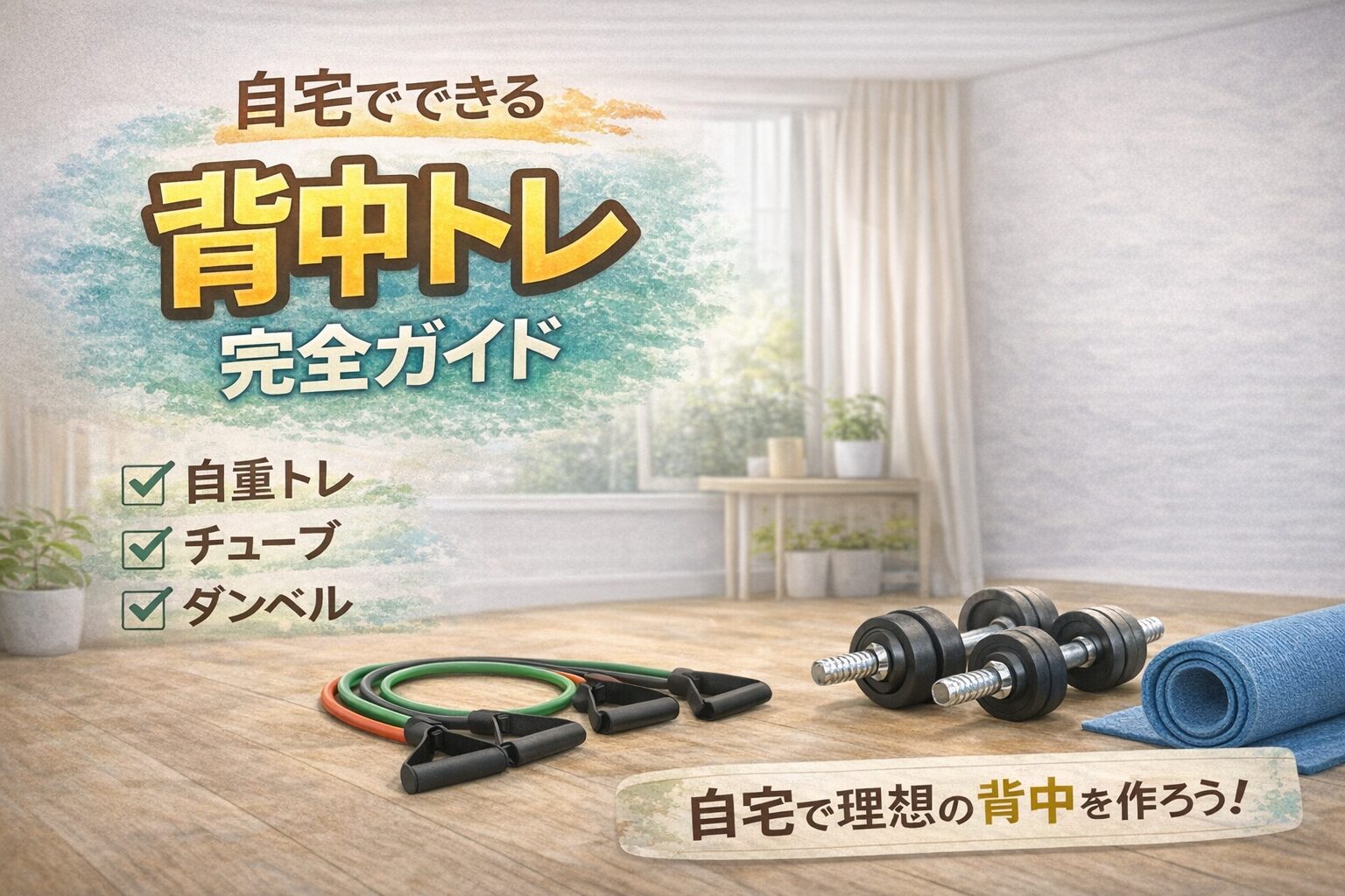 この「続けやすさ」こそが、体を変える一番の近道です。特に、トレーニングチューブやダンベルがあれば本格的な背中トレーニングが実施可能になります。