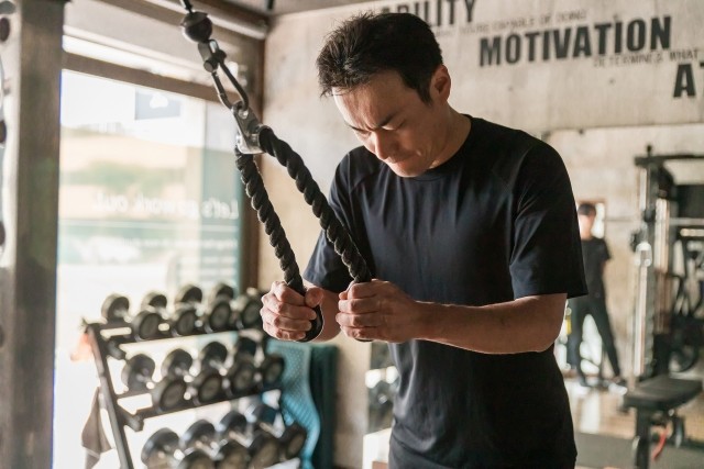一方、チューブが得意なのは、筋肉を狙いやすい、安全に筋トレが出来るという点です。チューブは徐々に負荷が高まりますので、丁寧に動作をすることが出来ます。フォームが安定しやすく、狙いたい筋肉を意識しやすいです。特に筋トレ初心者のフォーム習得の為のチューブはとても効果的です。また、ケーブルの様に強い負荷がかかり続けるということもないので、安全にトレーニングを行うことが出来ます。特に、肩トラブルを抱えている方はチューブでじっくり効かせるのがおすすめです。