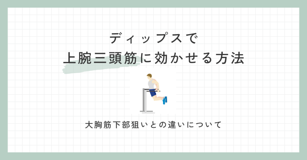 ディップスは、自重で高い負荷をかけられる上腕三頭筋トレーニングです。ナロープッシュアップやリバースプッシュアップよりも強度が高く、本気で腕を太くしたい人には必須の種目です。